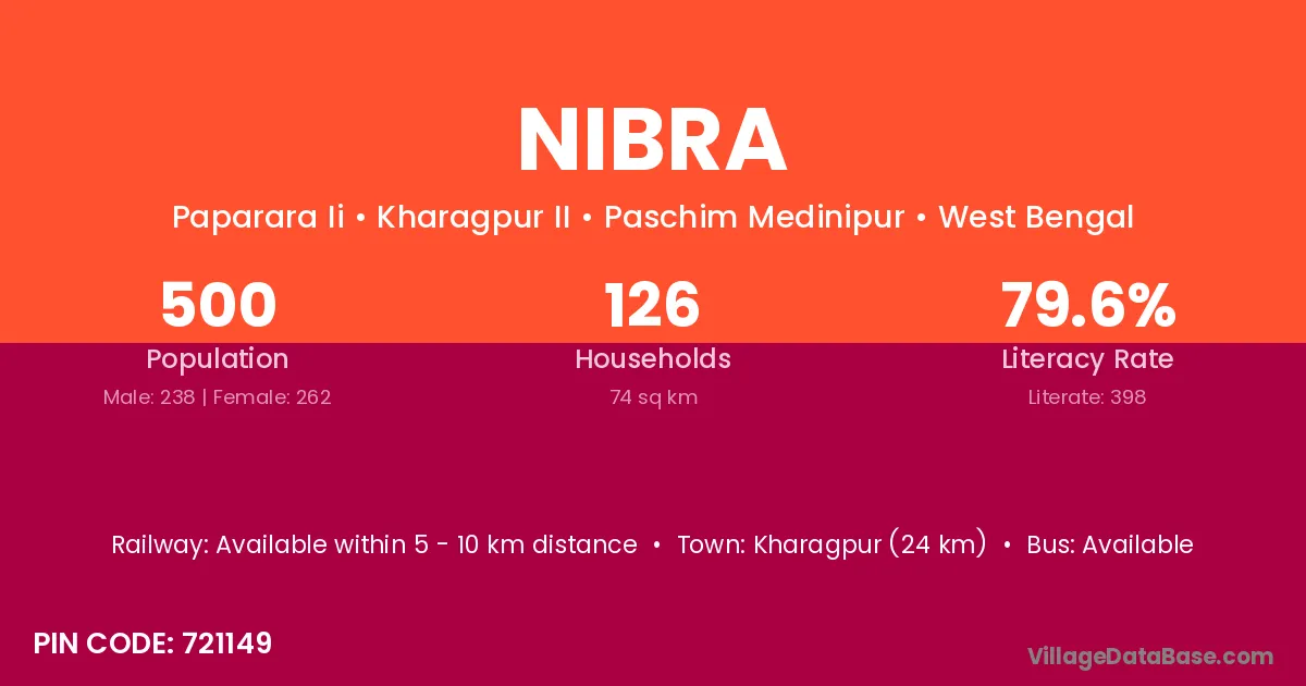 Antagarh (42 km) is the nearest town to Nibra village for major economic activities and is located approximately 42 km away.