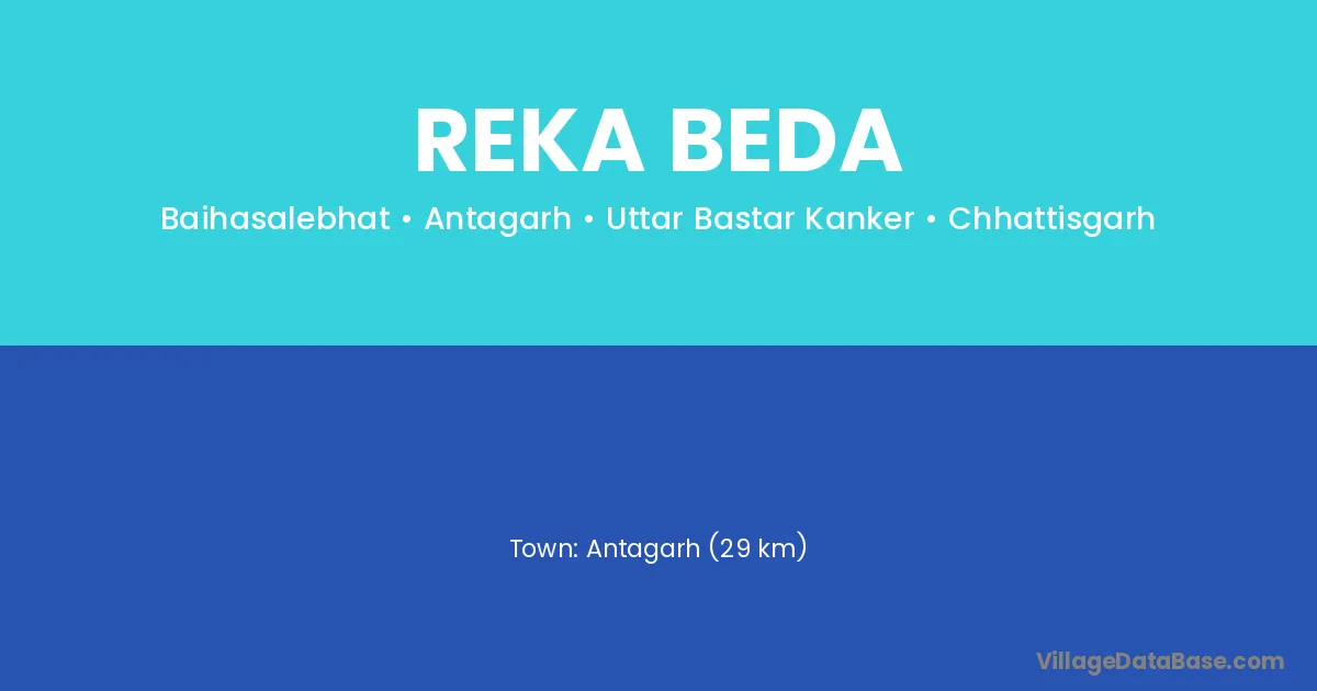 Antagarh (29 km) is the nearest town to Reka Beda village for major economic activities and is located approximately 29 km away.