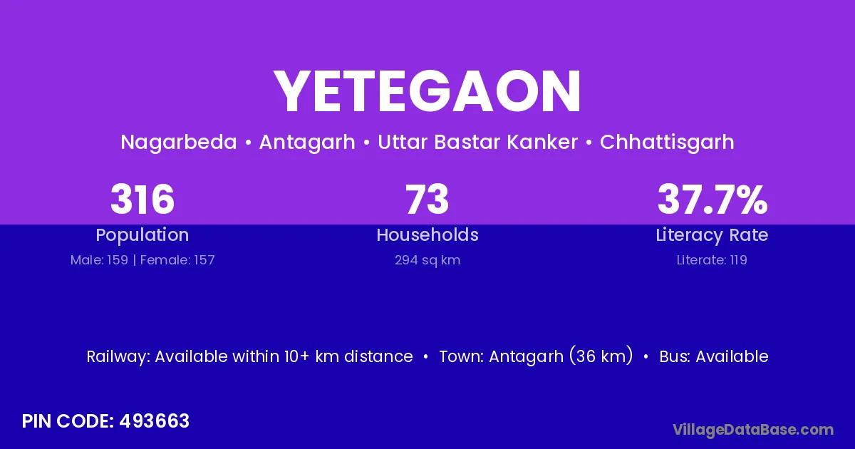 According to Census 2011 information, the village code of Yetegaon village is 493663.
