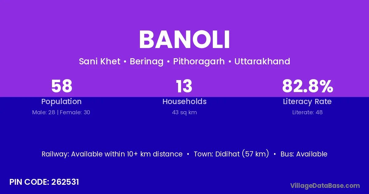 The literacy rate of Banoli village is 41.95%. Male literacy stands at 53.89% and female literacy at 30.94%.