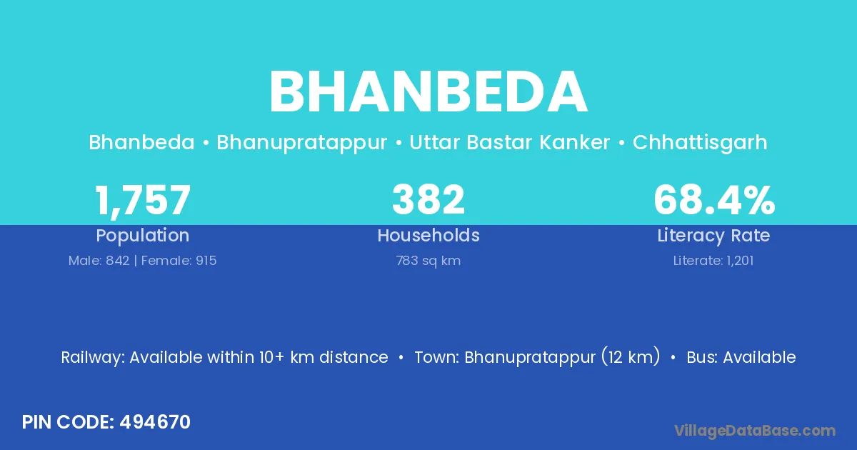 According to Census 2011 information, the village code of Bhanbeda village is 494670.