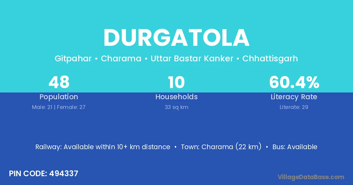 According to Census 2011 information, the village code of Durgatola village is 494337.