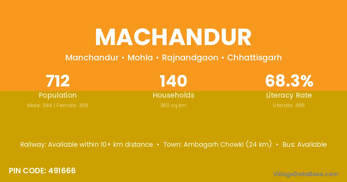 The literacy rate of Machandur village is 71.49%. Male literacy stands at 78.35% and female literacy at 64.03%.