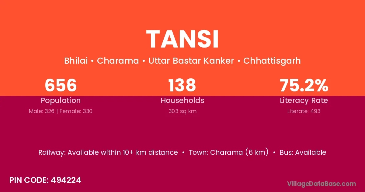 Tansi village has a total population of 656 people, of which 326 are males and 330 are females.