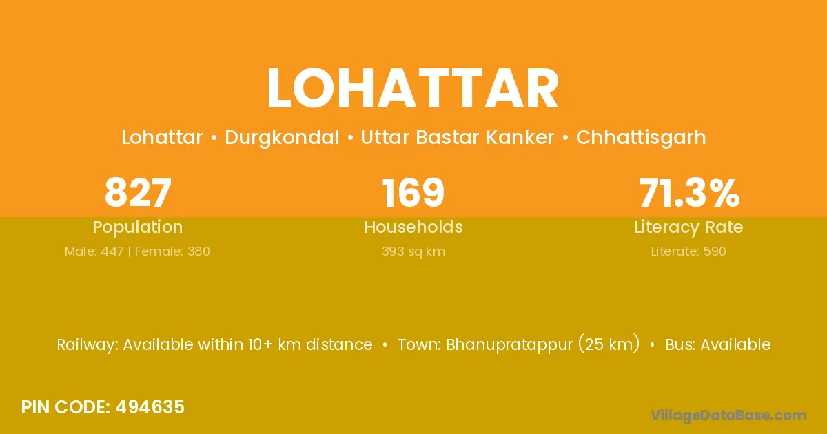Bhanupratappur (25 km) is the nearest town to Lohattar village for major economic activities and is located approximately 25 km away.