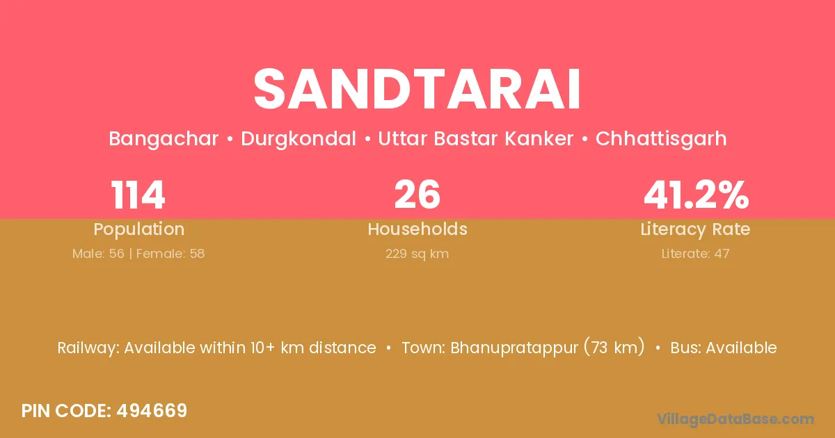 Sandtarai village has a total population of 114 people, of which 56 are males and 58 are females.