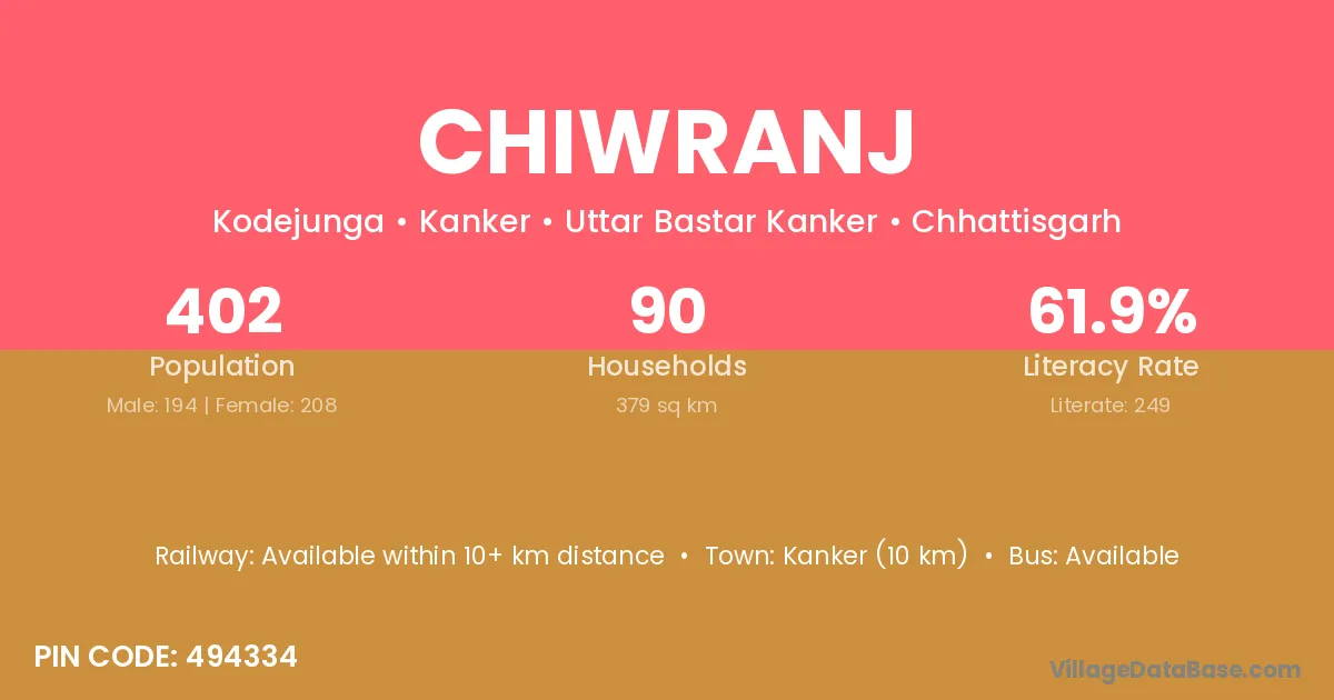 Kanker (10 km) is the nearest town to Chiwranj village for major economic activities and is located approximately 10 km away.