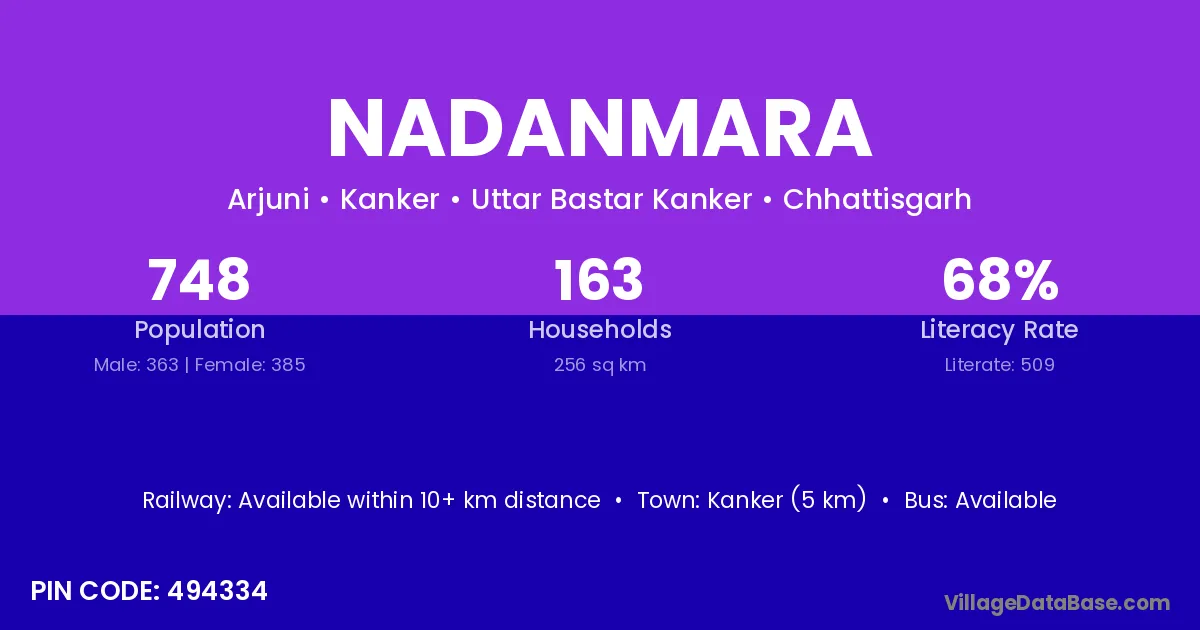 Kanker (5 km) is the nearest town to Nadanmara village for major economic activities and is located approximately 5 km away.