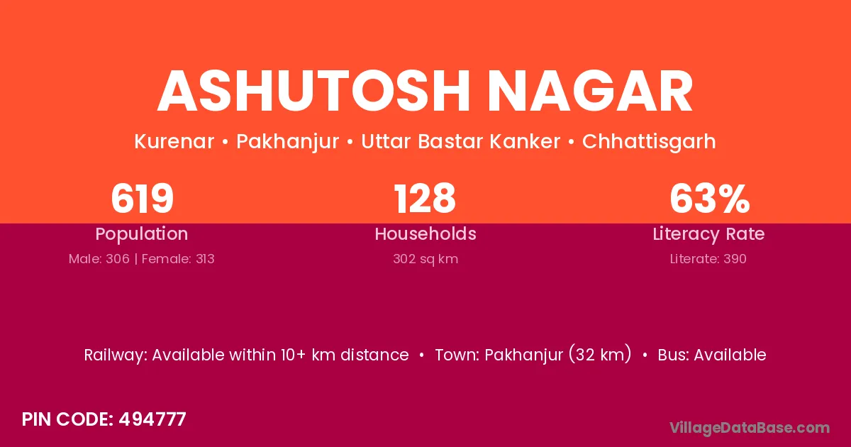 According to Census 2011 information, the village code of Ashutosh Nagar village is 494777.