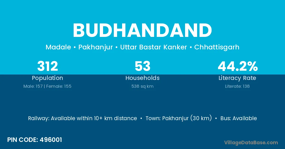Pakhanjur (30 km) is the nearest town to Budhandand village for major economic activities and is located approximately 30 km away.