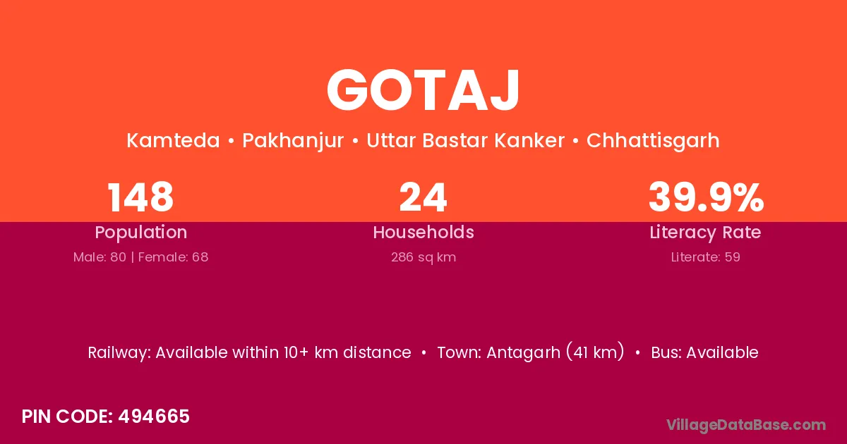 According to Census 2011 information, the village code of Gotaj village is 494665.