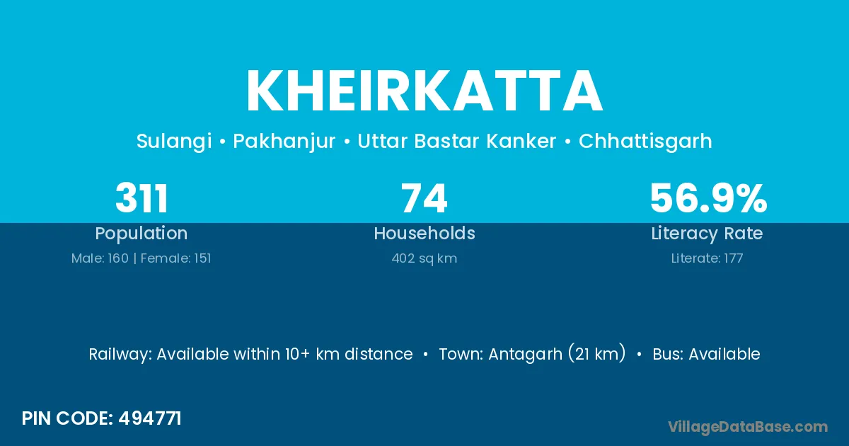 According to Census 2011 information, the village code of Kheirkatta village is 494771.