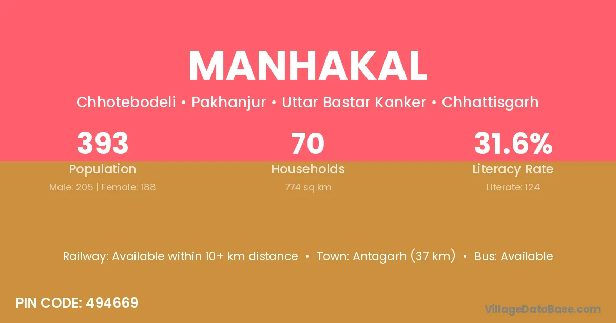 According to Census 2011 information, the village code of Manhakal village is 494669.
