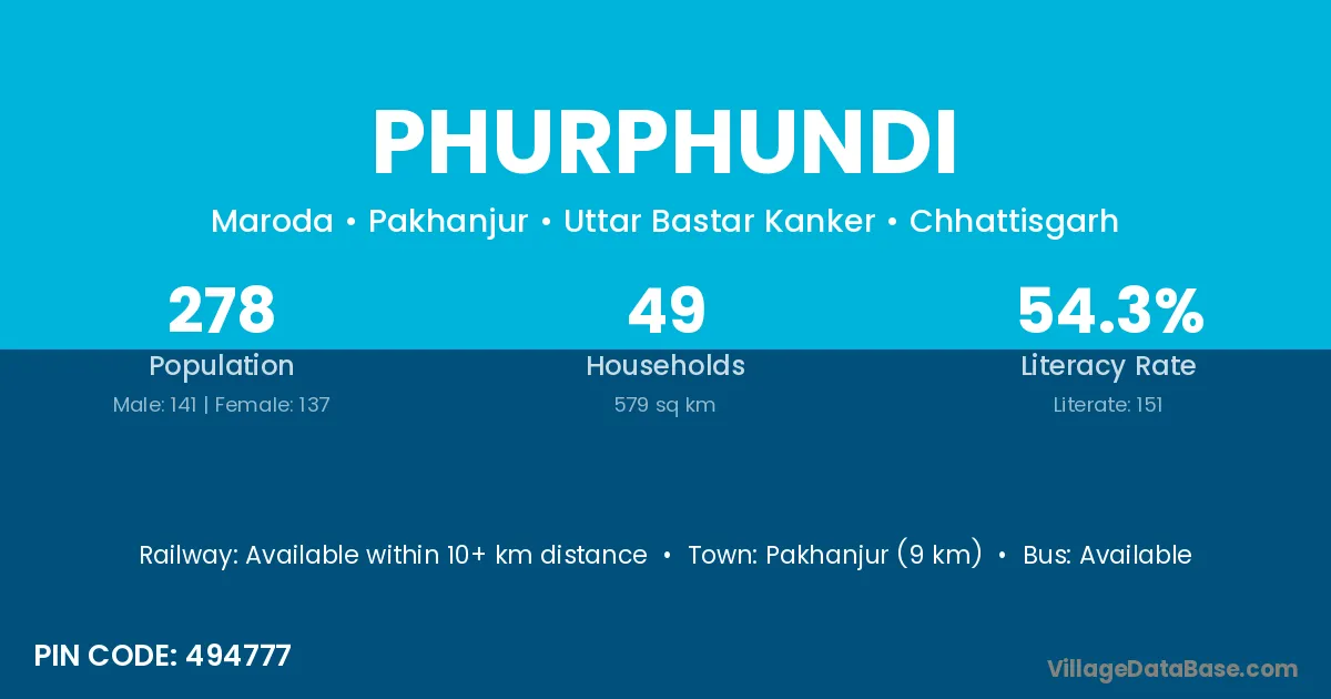 Phurphundi village has a total population of 278 people, of which 141 are males and 137 are females.