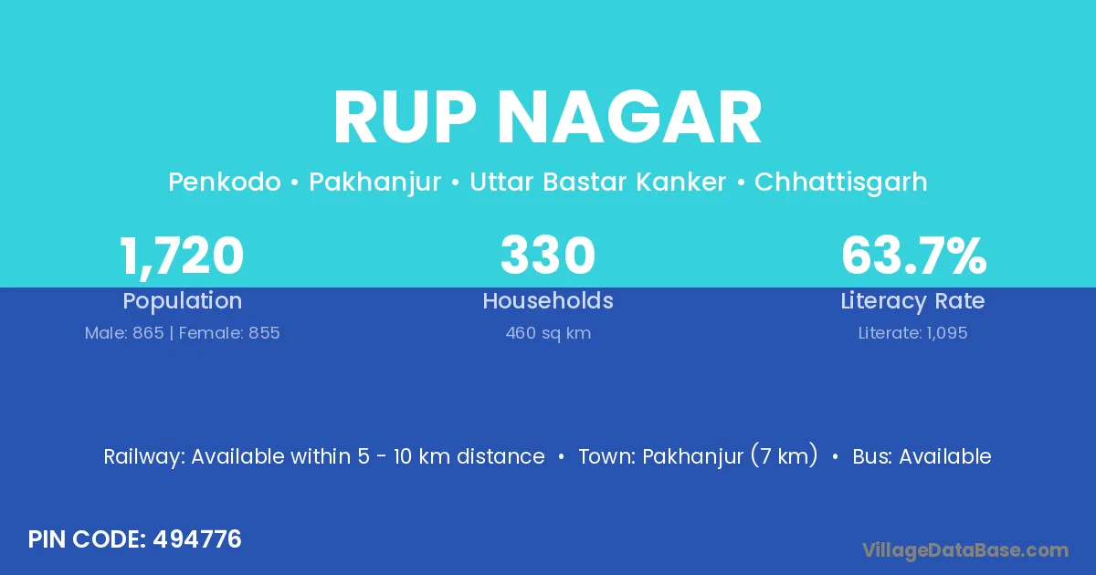 Pakhanjur (7 km) is the nearest town to Rup Nagar village for major economic activities and is located approximately 7 km away.