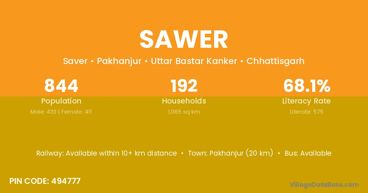 Pakhanjur (20 km) is the nearest town to Sawer village for major economic activities and is located approximately 20 km away.