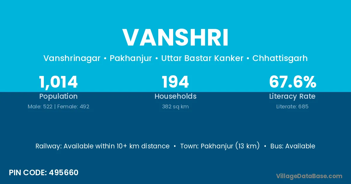 According to Census 2011 information, the village code of Vanshri village is 495660.