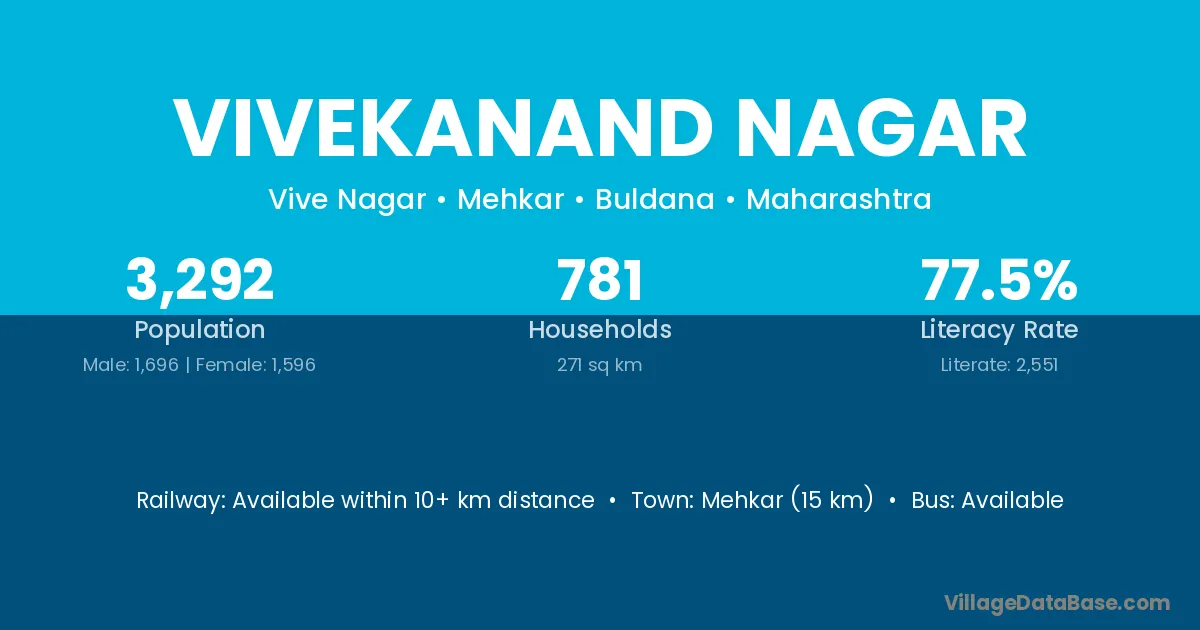 Pakhanjur (14 km) is the nearest town to Vivekanand Nagar village for major economic activities and is located approximately 14 km away.