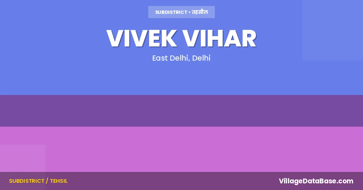 Vivek Vihar is a town and Tehsil in the East Delhi district of the Delhi. In India, a Tehsil is a subdivision of a district responsible for the administration and revenue collection of a specific area within the district. Tehsils play a crucial role in the local governance structure, contributing significantly to the development and administration of their communities.