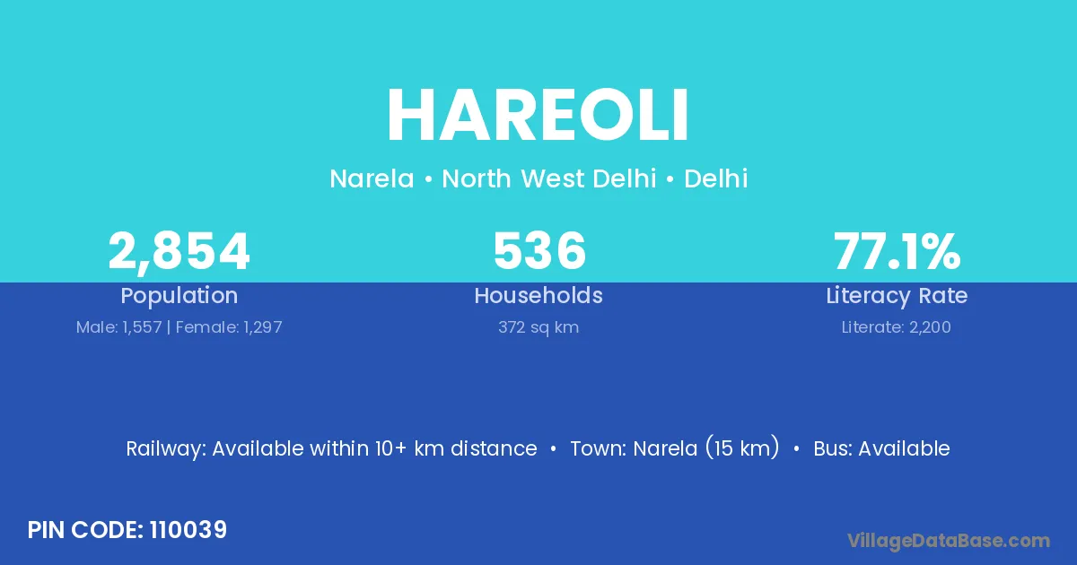 Narela (15 km) is the nearest town to Hareoli village for major economic activities and is located approximately 15 km away.