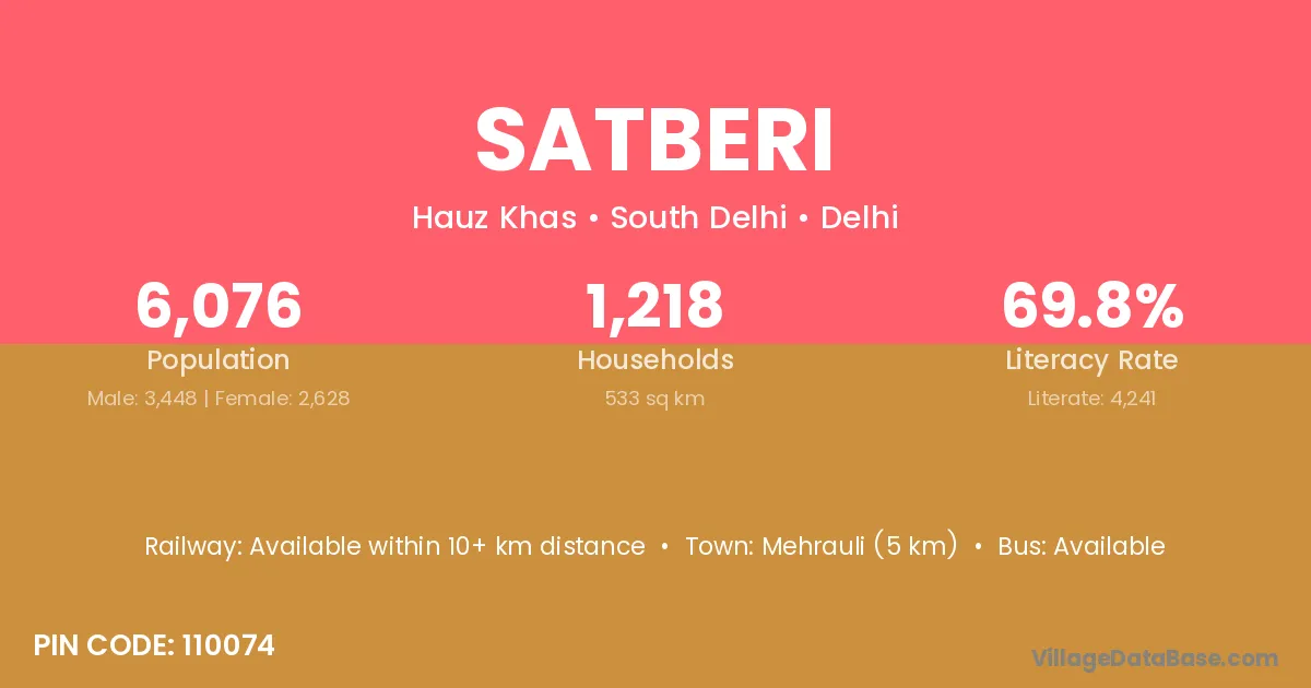 Mehrauli (5 km) is the nearest town to Satberi village for major economic activities and is located approximately 5 km away.