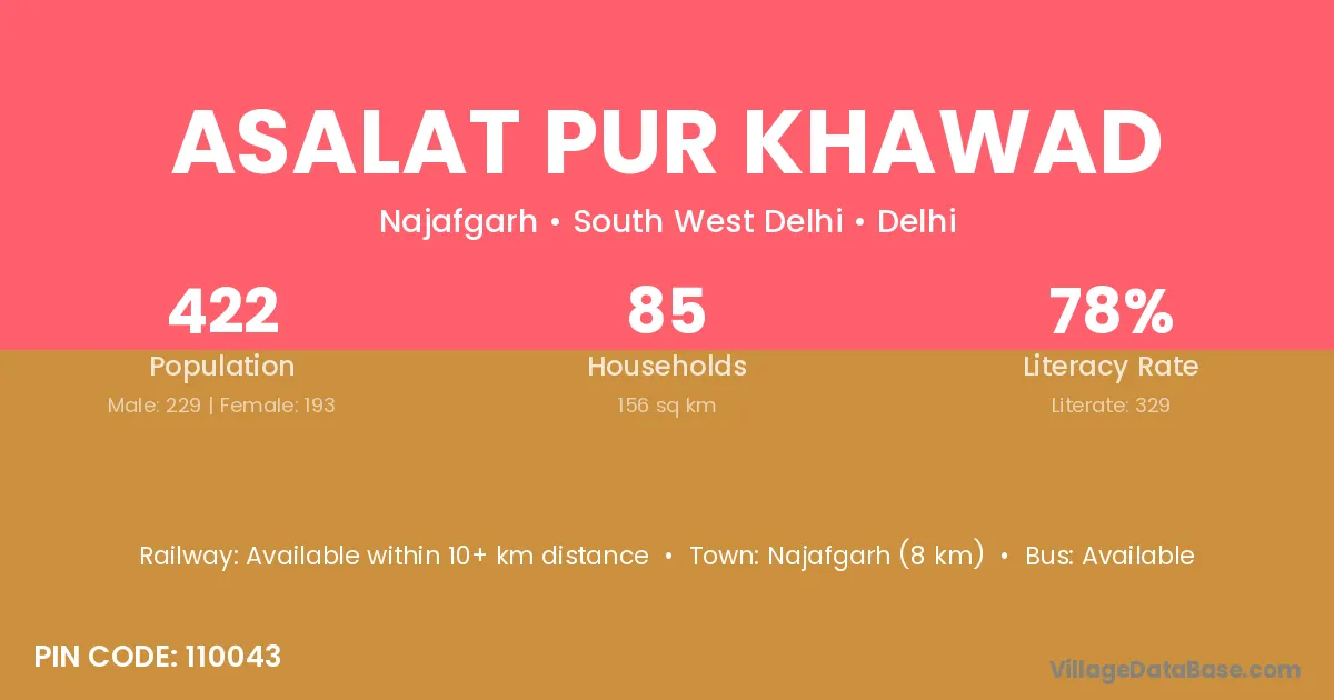 Asalat Pur Khawad village has a total population of 422 people, of which 229 are males and 193 are females.