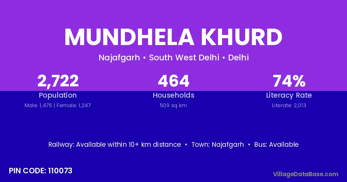 Mundhela Khurd village has a total population of 2,722 people, of which 1,475 are males and 1,247 are females.