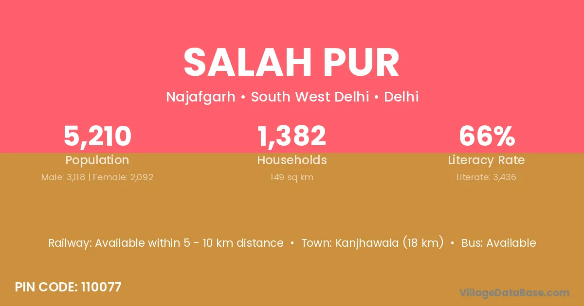 Kanjhawala (18 km) is the nearest town to Salah Pur village for major economic activities and is located approximately 18 km away.