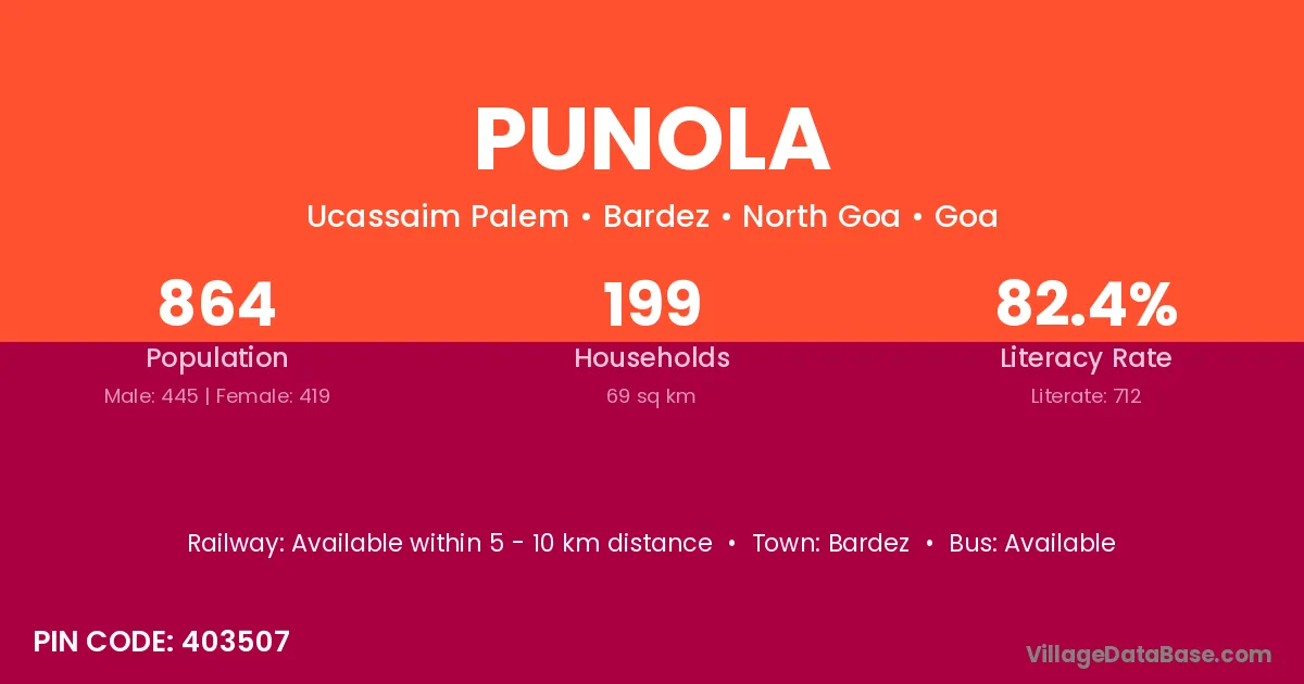 Punola village has a total population of 864 people, of which 445 are males and 419 are females.