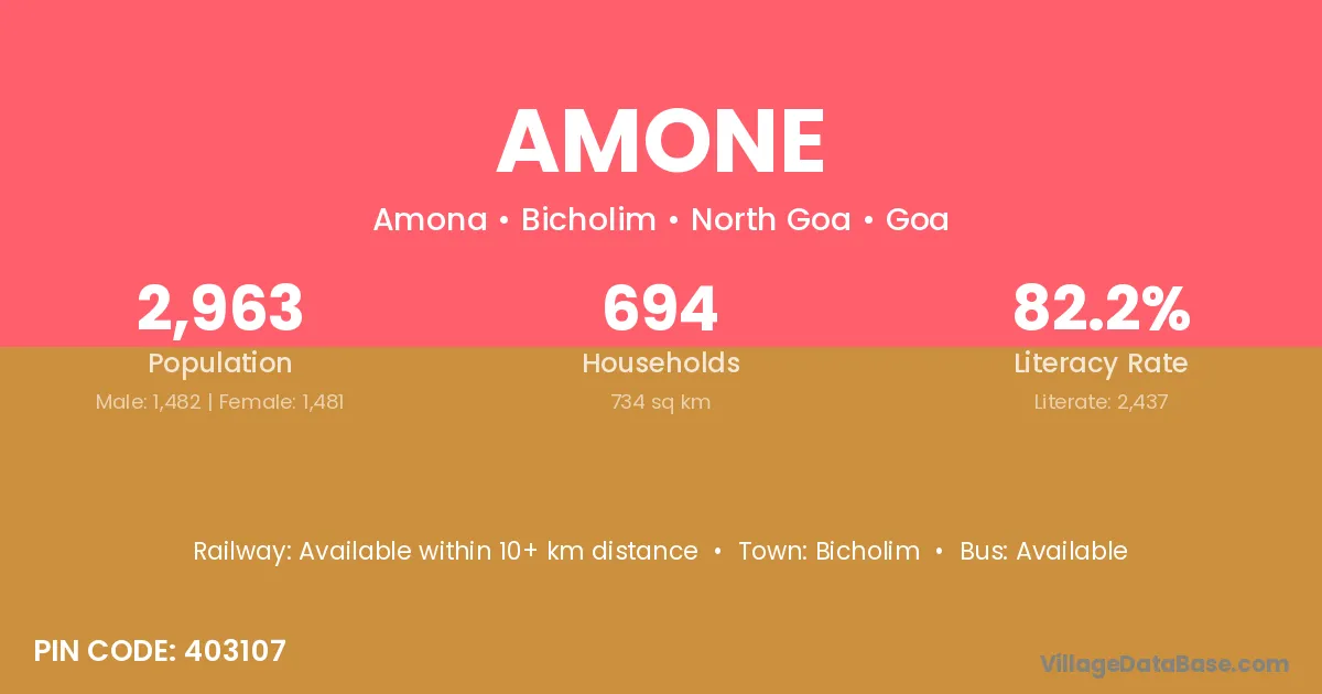 Amone village has a total population of 2,963 people, of which 1,482 are males and 1,481 are females.
