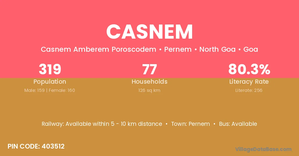 According to Census 2011 information, the village code of Casnem village is 403512.
