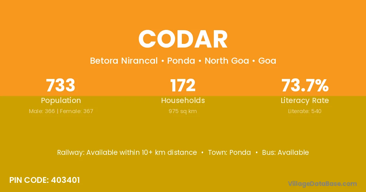 Ponda is the nearest town to Codar village for major economic activities