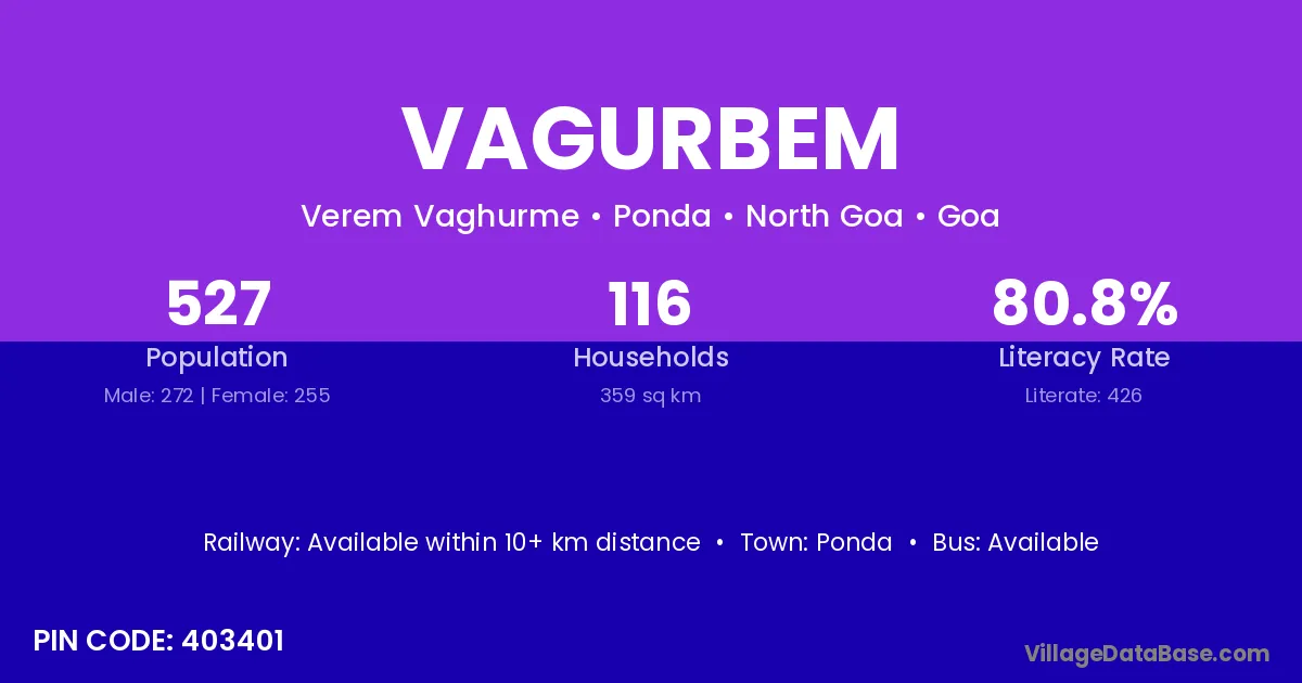 Ponda is the nearest town to Vagurbem village for major economic activities