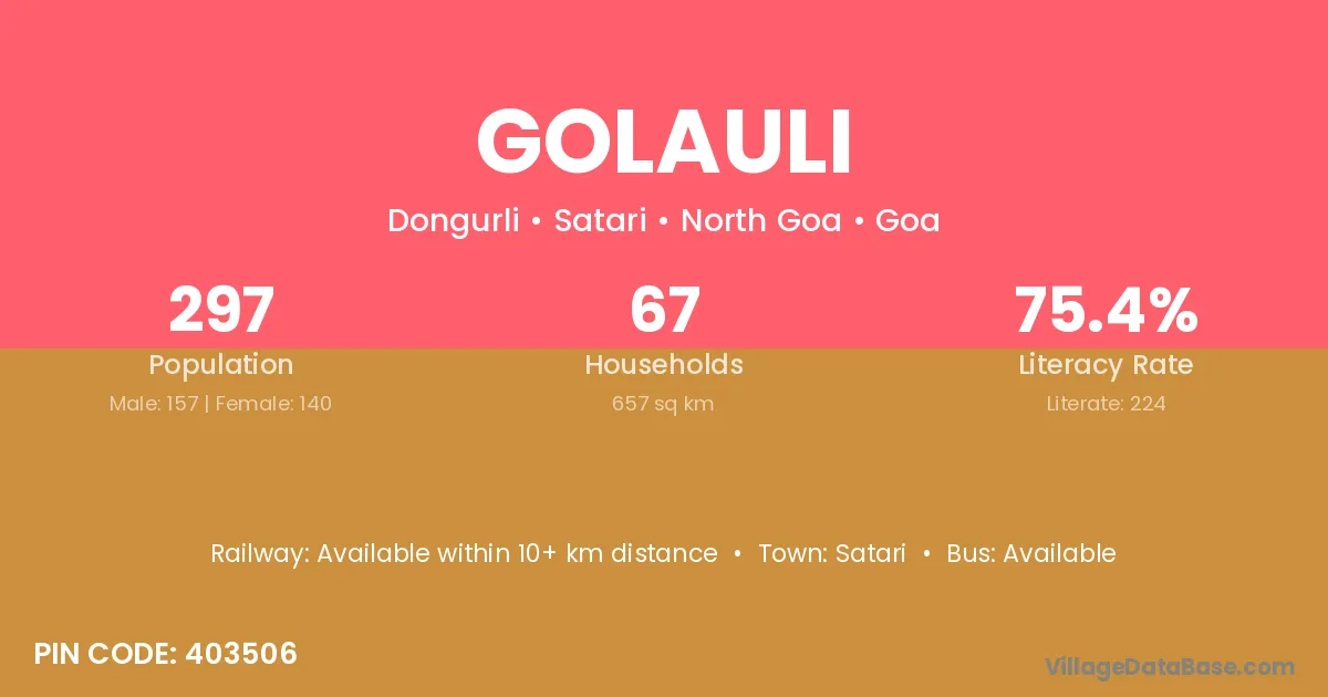 Golauli village has a total population of 297 people, of which 157 are males and 140 are females.