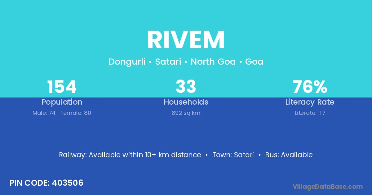 Satari is the nearest town to Rivem village for major economic activities