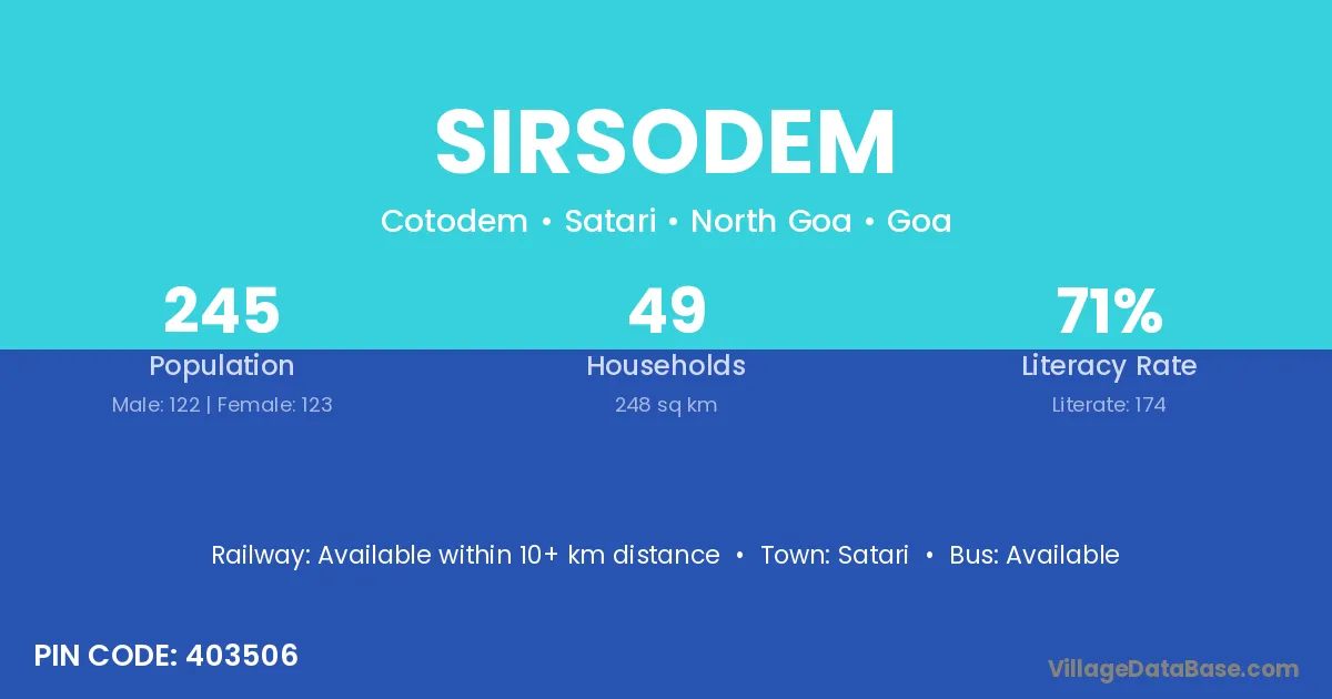 According to Census 2011 information, the village code of Sirsodem village is 403506.