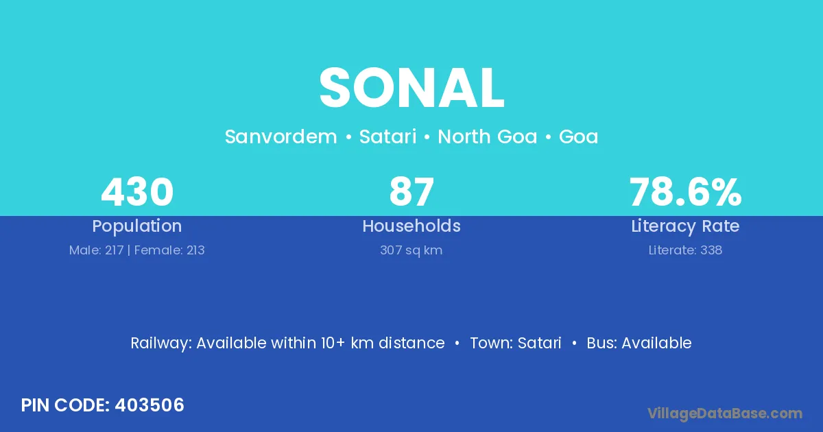 Satari is the nearest town to Sonal village for major economic activities