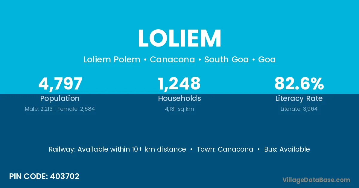 According to Census 2011 information, the village code of Loliem village is 403702.