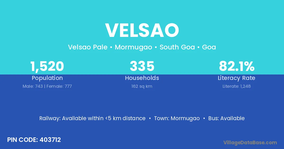 According to Census 2011 information, the village code of Velsao village is 403712.