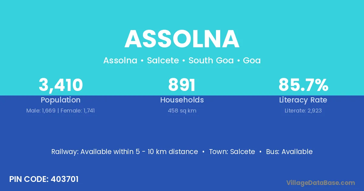 According to Census 2011 information, the village code of Assolna village is 403701.