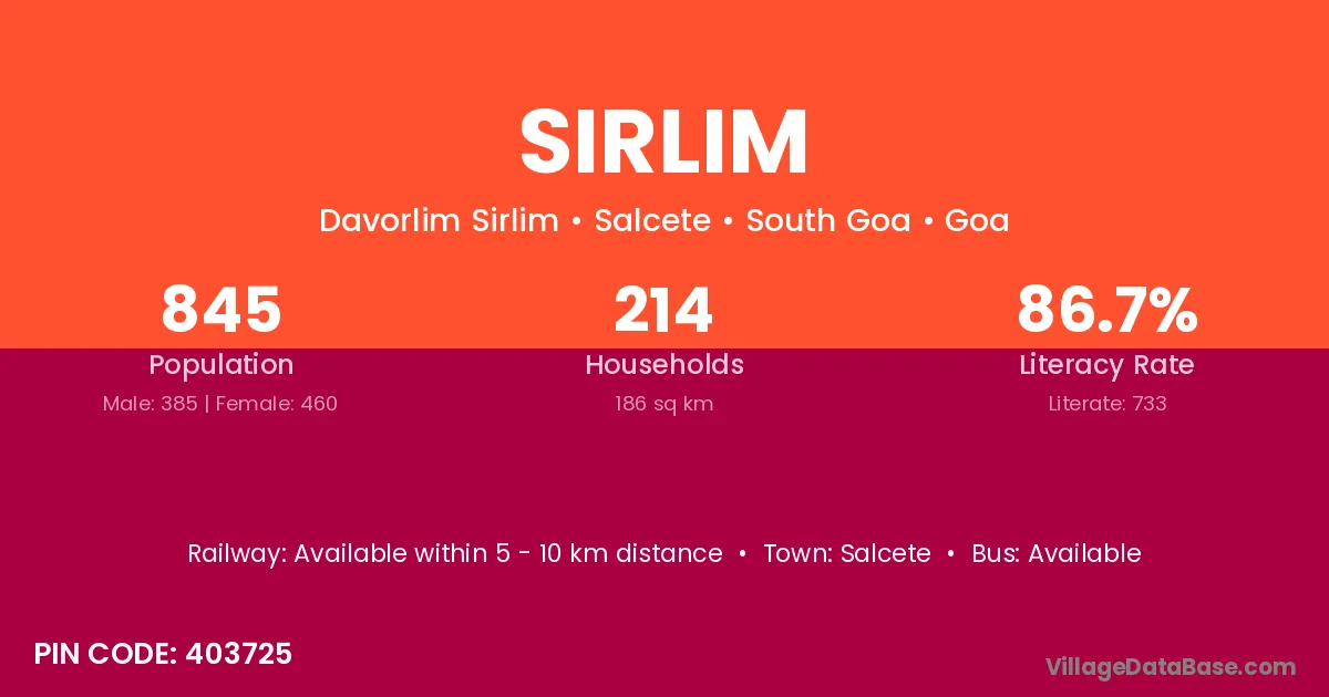 According to Census 2011 information, the village code of Sirlim village is 403725.