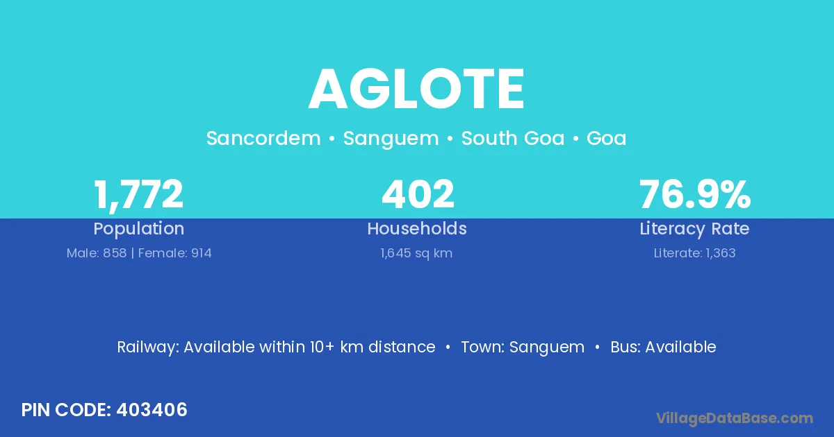 According to Census 2011 information, the village code of Aglote village is 403406.