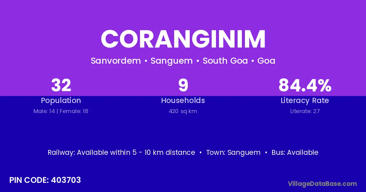 Sanguem is the nearest town to Coranginim village for major economic activities