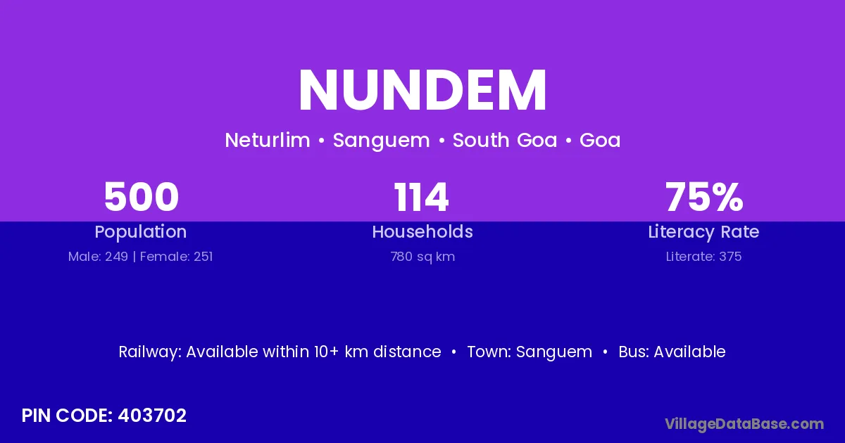 Sanguem is the nearest town to Nundem village for major economic activities