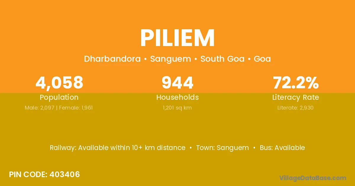 According to Census 2011 information, the village code of Piliem village is 403406.