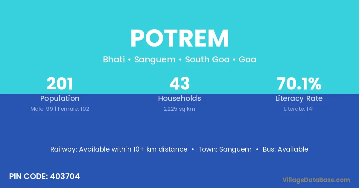 According to Census 2011 information, the village code of Potrem village is 403704.
