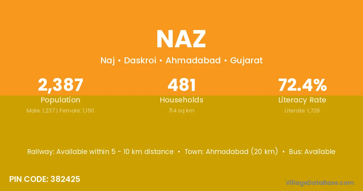According to Census 2011 information, the village code of Naz village is 382425.
