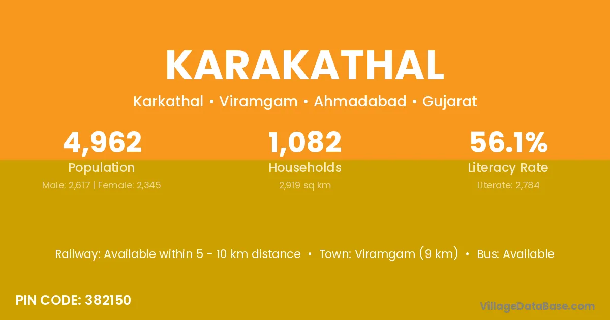 Viramgam (9 km) is the nearest town to Karakathal village for major economic activities and is located approximately 9 km away.