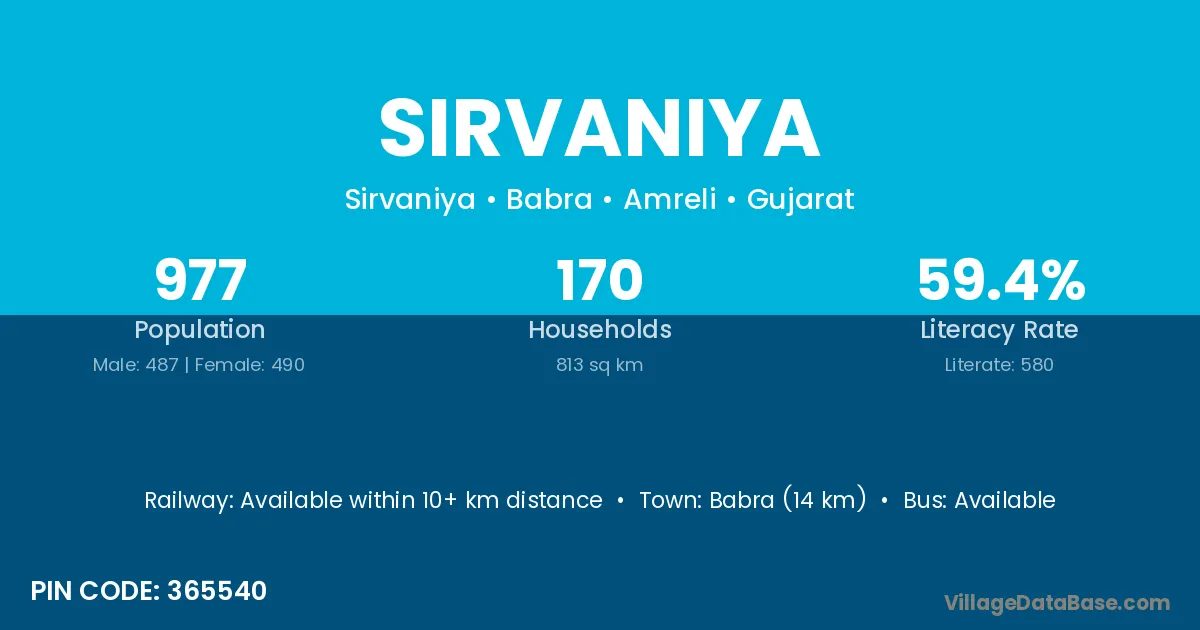 Babra (14 km) is the nearest town to Sirvaniya village for major economic activities and is located approximately 14 km away.