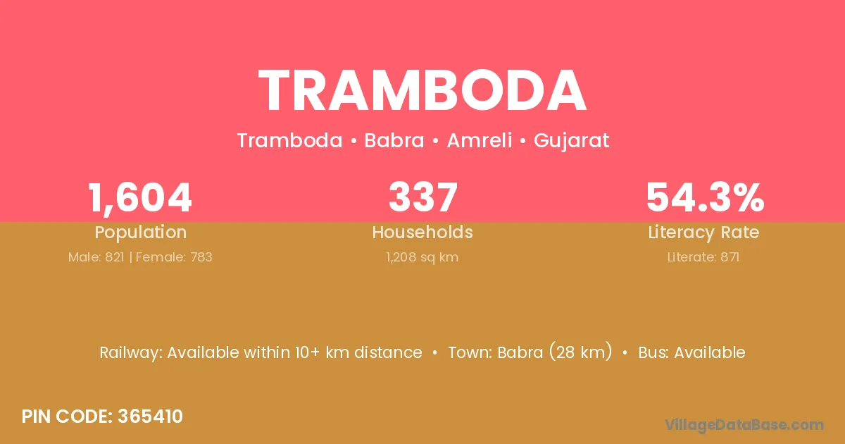 Babra (28 km) is the nearest town to Tramboda village for major economic activities and is located approximately 28 km away.